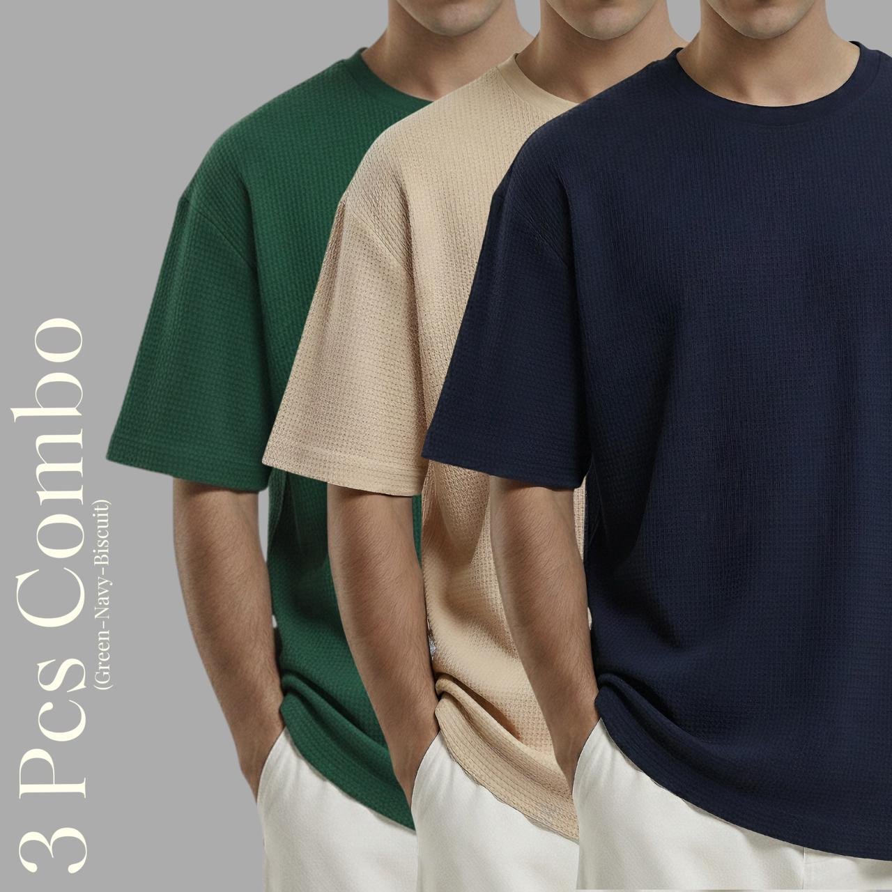 Premium Waffle Drop Shoulder B.green-Biscuit-Navy